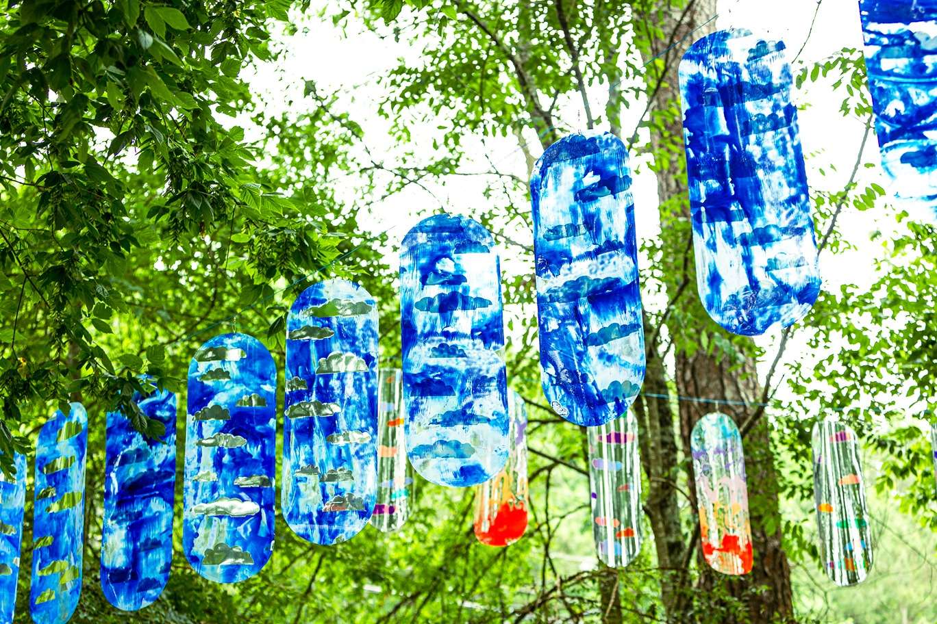 “They Danced Among The Trees” is inspired by memories of twirling in forests and watching dappled light dance through green canopies. My installation work is an intentional exploration of joy and a deliberate act of choosing happiness. Drawing inspiration from cherished memories of experiences in nature and with loved ones, I create large-scale installations that magnify moments of happiness, aiming to sustain joy in my own life. Through my work, I delve into the fragility of joy, the significance of gratitude, the importance of memorializing moments, and the ever-changing nature of happiness. The colorful and kinetic work plays with the reflective and refractive properties of light while casting colorful shadows beyond the physical boundaries of the installation. Using simple shapes, contours, and familiar imagery, I create artwork that amplifies joy in a hyperbolic format. I hope that my work will inspire a sense of wonder and delight in the viewer and serve as a reminder to cherish and savor the happy moments in life.