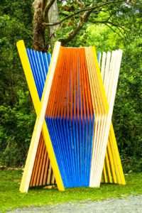 Xabana (34°00’38″N 84°20’12″W) is an inhabitable sculptural environment that acts both as a colorful marker and as a negotiated spatial environment in extension of the contiguous public space. The work continues a trajectory of temporary public art installations that the artist has been engaged with over the past decade, investigating the material and constructive implications and potentials of temporary public sculpture that is conceived with a limited existence in mind. Constructed out of regular 2×4 lumber the work will age over time, and thus mark the passage of time, to be eventually deconstructed at the end of the exhibition, and the material to be cycled back into the material cycle of the construction industry. A recurring interest in the artist’s work is how space, material assembly and related processes allow for the experience of the spatial condition in relation to its place, and to bring into focus notions of material, cultural and spatial ecology embedded in the built environment.