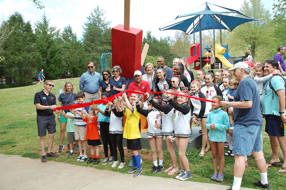 Every year since the Roswell Arts Fund’s inception in 2016, Synovus (formerly Bank of North Georgia) has sponsored a sculpture in the ArtAround Roswell Sculpture Tour. This year they are the sponsor of Ice Pops by Craig Gray, located near the playground in Riverside Park. This sponsorship is led by Catherine who is Vice President, Retail Market Manager at Synovus.