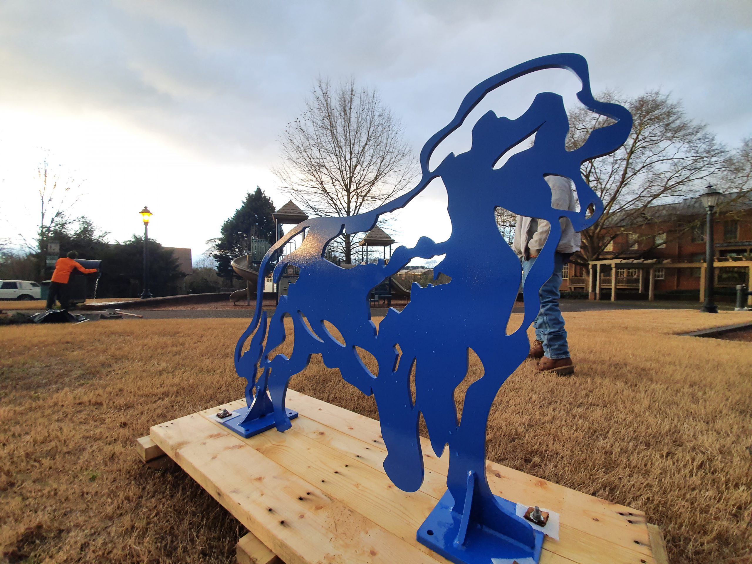 If you’ve ever been anywhere in Roswell, you’d know that this city loves its dogs! Nestled in the playground of Sloan Street Park you’ll find a fund reminder of this canine connection in Golden by Joe Norman. This big blue golden retriever is a stalwart sentinel and welcoming friend to cyclists visiting the park or nearby attractions like Big Creek Greenway and downtown Roswell. And of course, there’s plenty of places to walk your pooch if you’re ever taking your own four-legged friend out for a stroll!